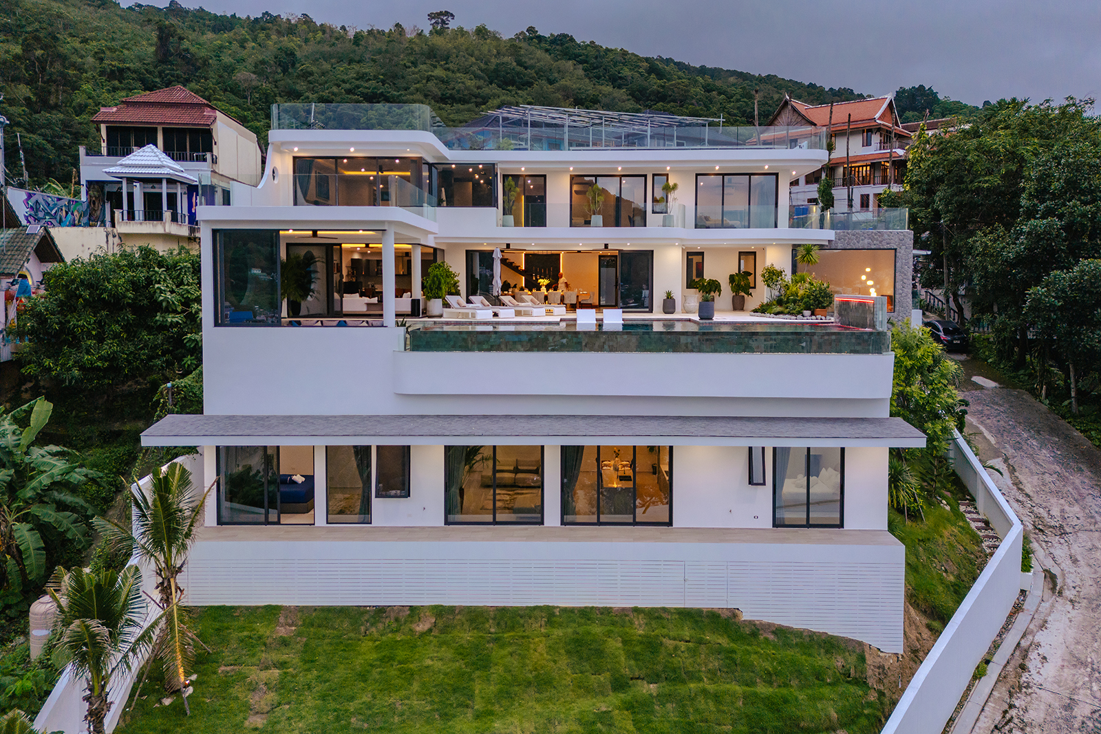 Escape to paradise in this stunning 5-King size bed bedrooms villa in the heart of Patong, but on top of the hills. With breathtaking sea and mountain views, this three-story retreat offers a perfect blend of modern elegance and tropical charm. Just minutes from Patong’s nightlife, beaches, and shopping, this villa is your ideal luxurious getaway.