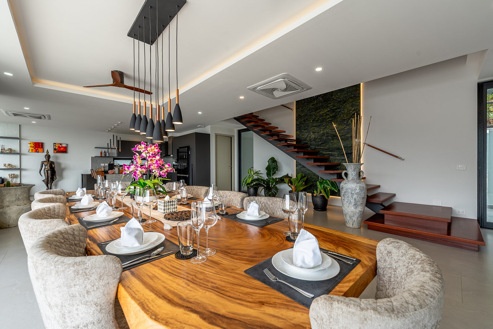 Escape to paradise in this stunning 5-King size bed bedrooms villa in the heart of Patong, but on top of the hills. With breathtaking sea and mountain views, this three-story retreat offers a perfect blend of modern elegance and tropical charm. Just minutes from Patong’s nightlife, beaches, and shopping, this villa is your ideal luxurious getaway.